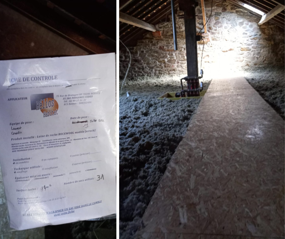 En effet, après un diagnostic réalisé par notre technicien en présence des clients, l’ancienne isolation était détériorée et en quantité insuffisante. De surcroit, les clients souffraient de la chaleur en été et se plaignaient de leur consommation énergétique en hiver.